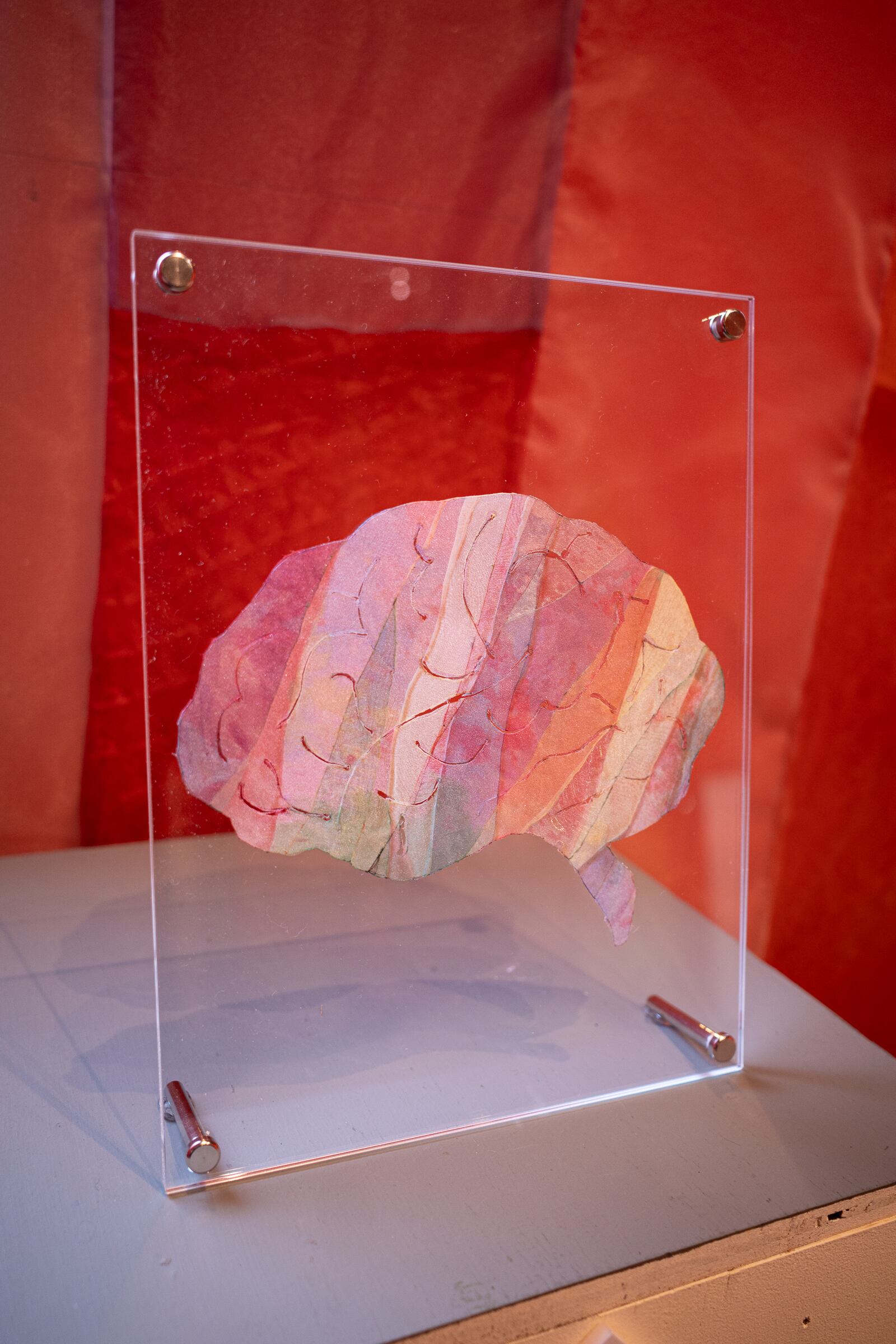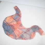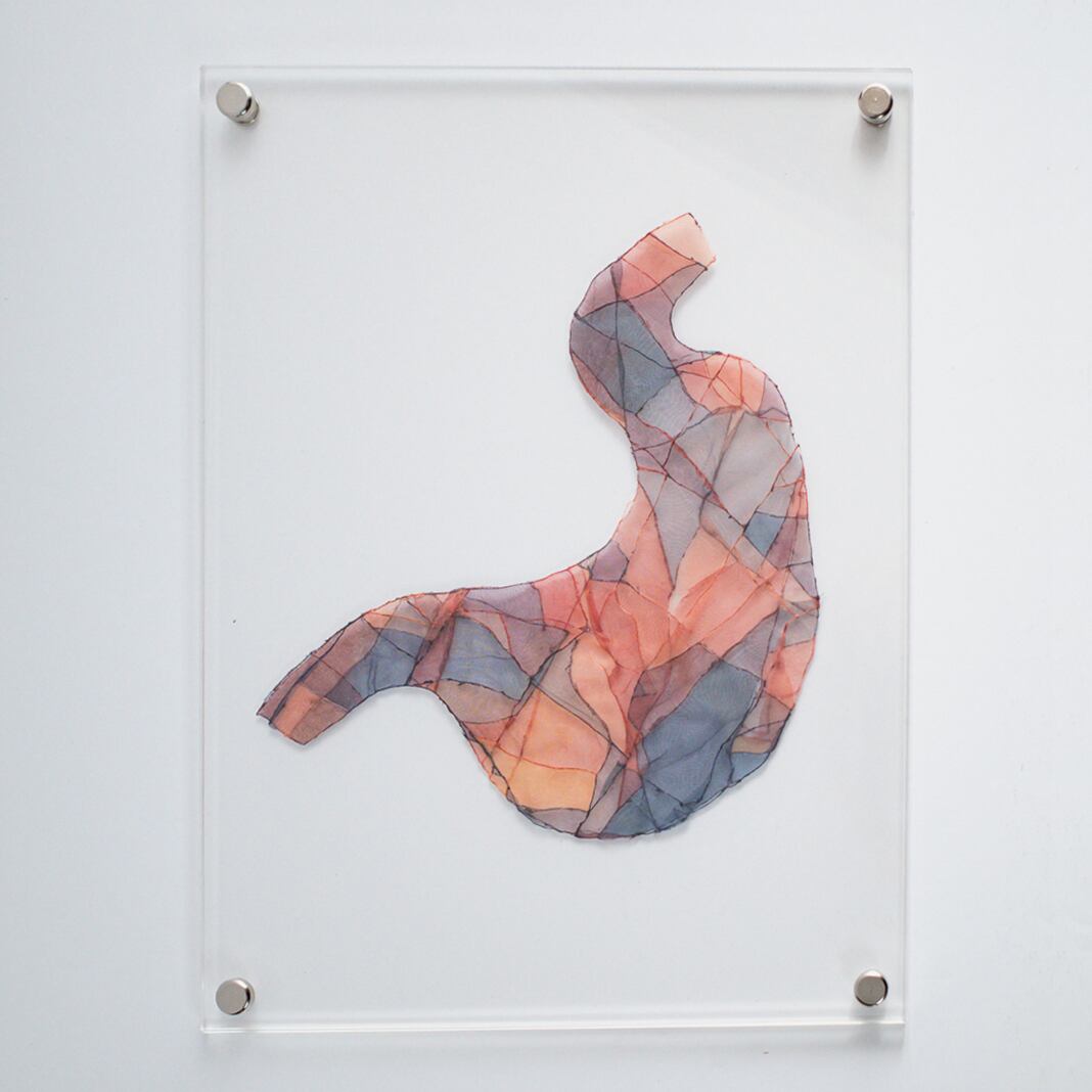染めた布をつなぎ合わせた布宝石シリーズの作品です。