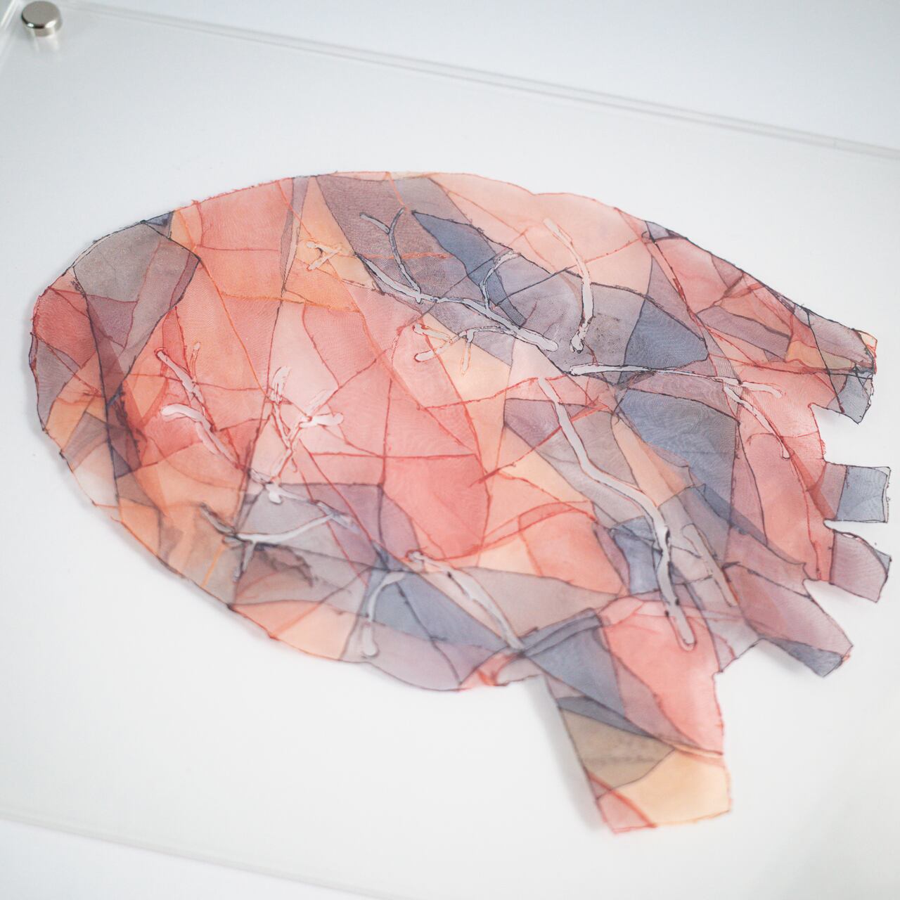 染めた布をつなぎ合わせた布宝石シリーズの作品です。