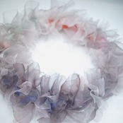 混沌とした自分の手の動くままに染めた布を使い制作しました。