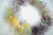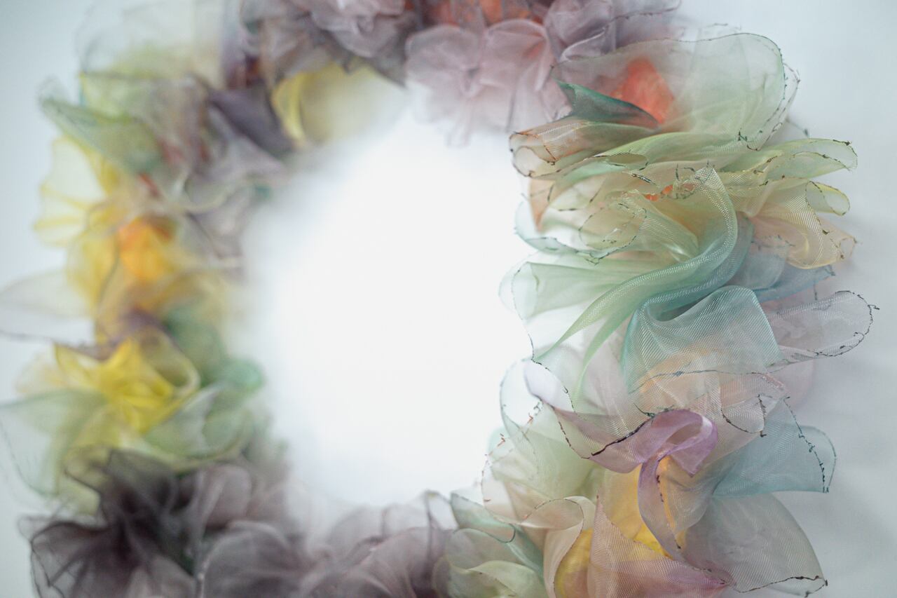 混沌とした自分の手の動くままに染めた布を使い制作しました。