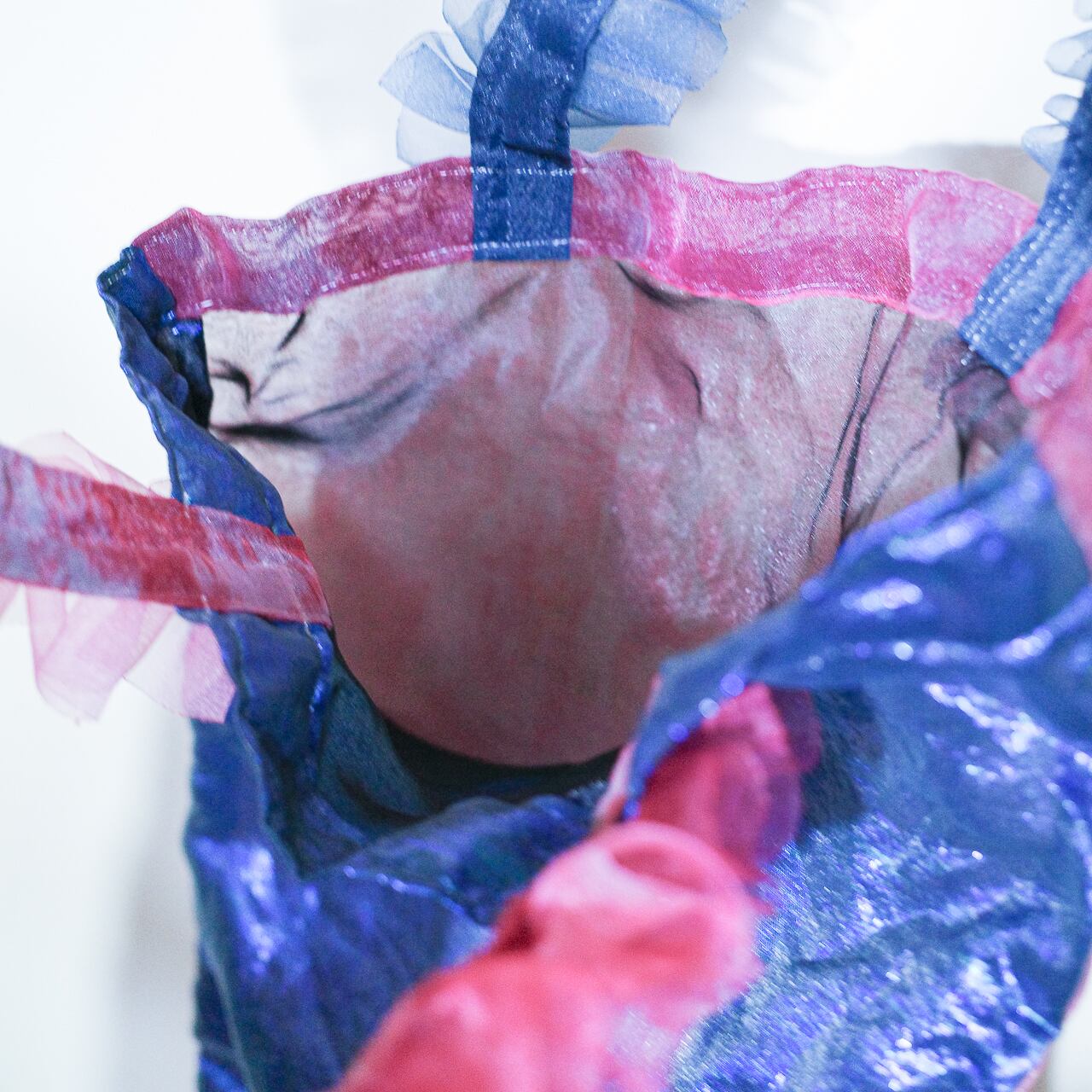 透け感のある生地を使っていますが、内側に黒を被せているのでほんのり透けるくらいになっています(写真4枚目参照)