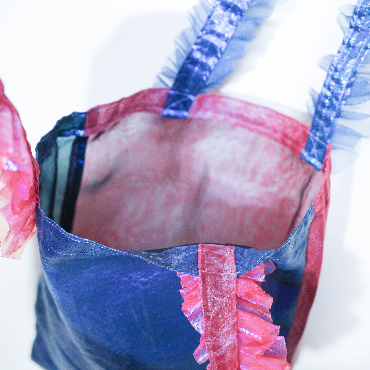 透け感のある生地を使っていますが、内側に黒を被せているのでほんのり透けるくらいになっています(写真4枚目参照)